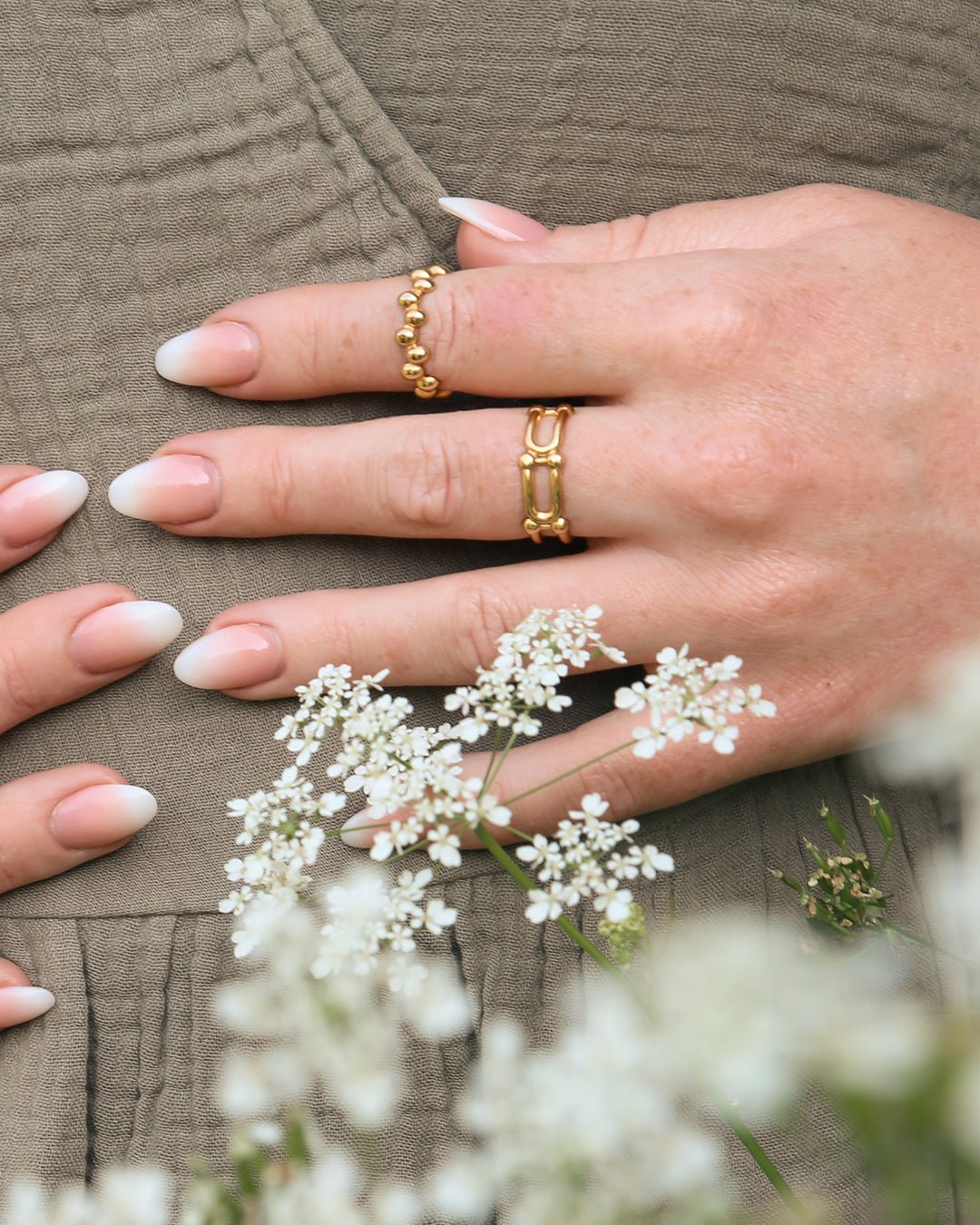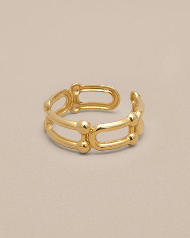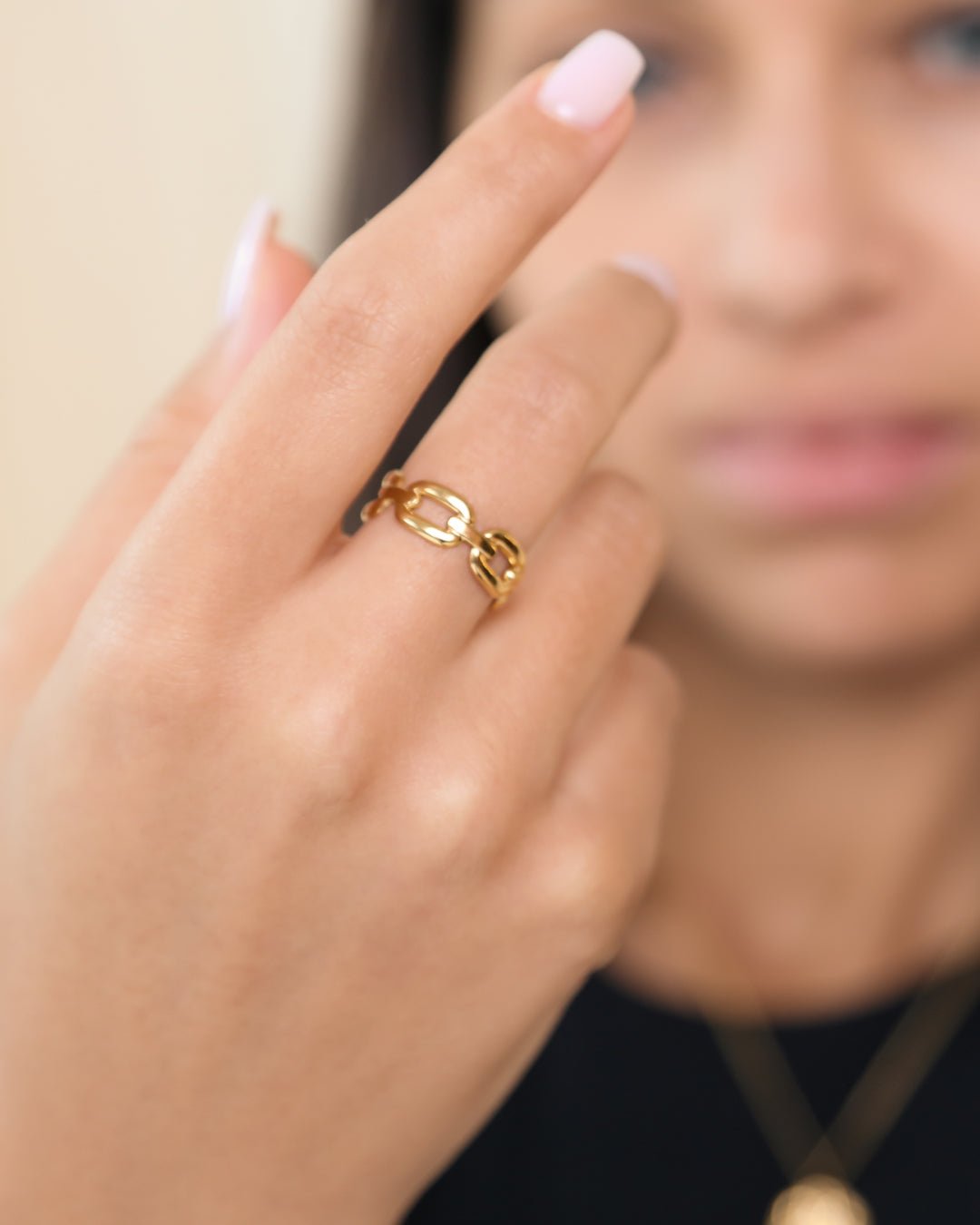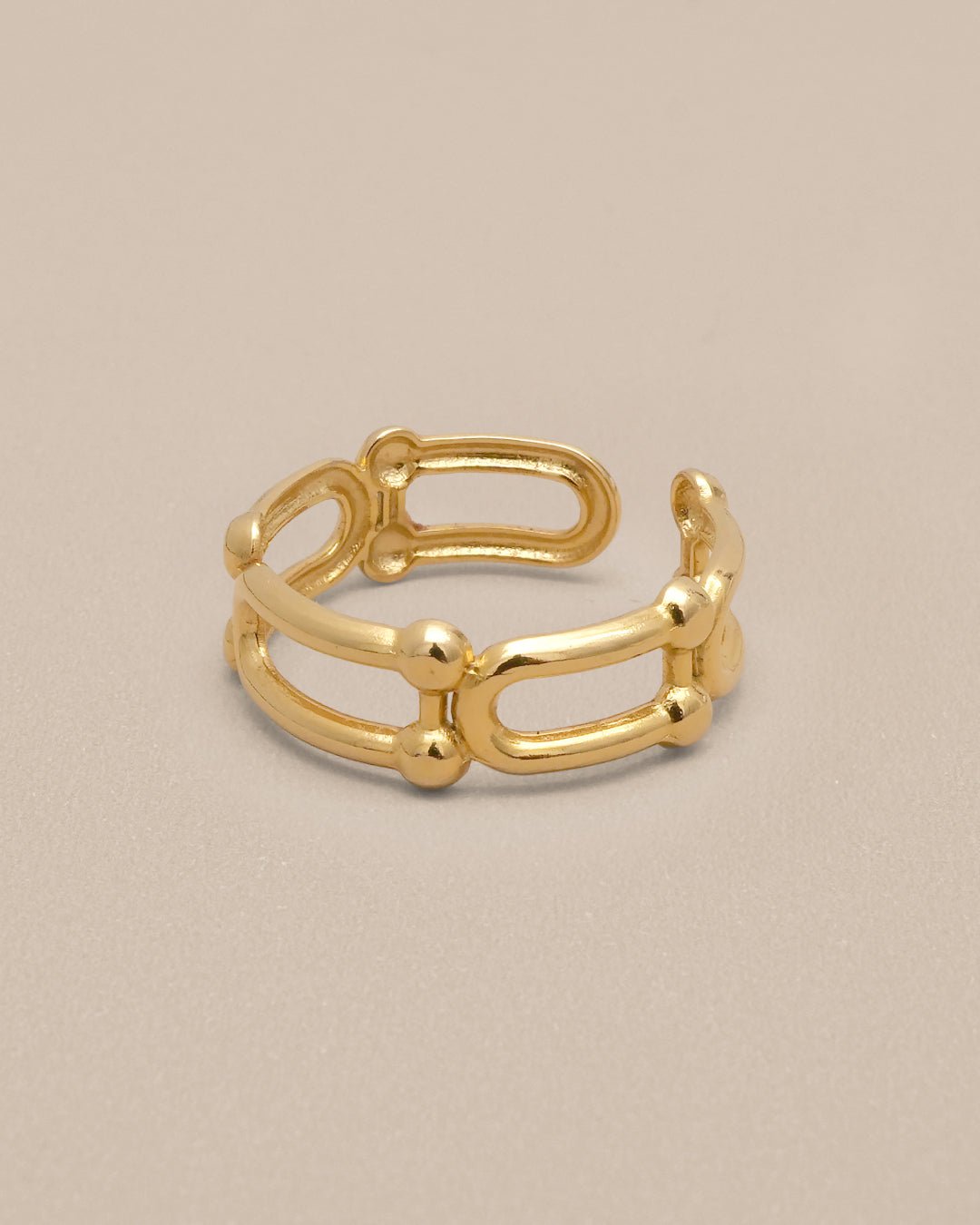 Buckle up for style! Made from durable stainless steel and recycled gold, this unique chain ring allows you to adjust the size for ultimate comfort. A versatile and sustainable addition to any jewellery collection.