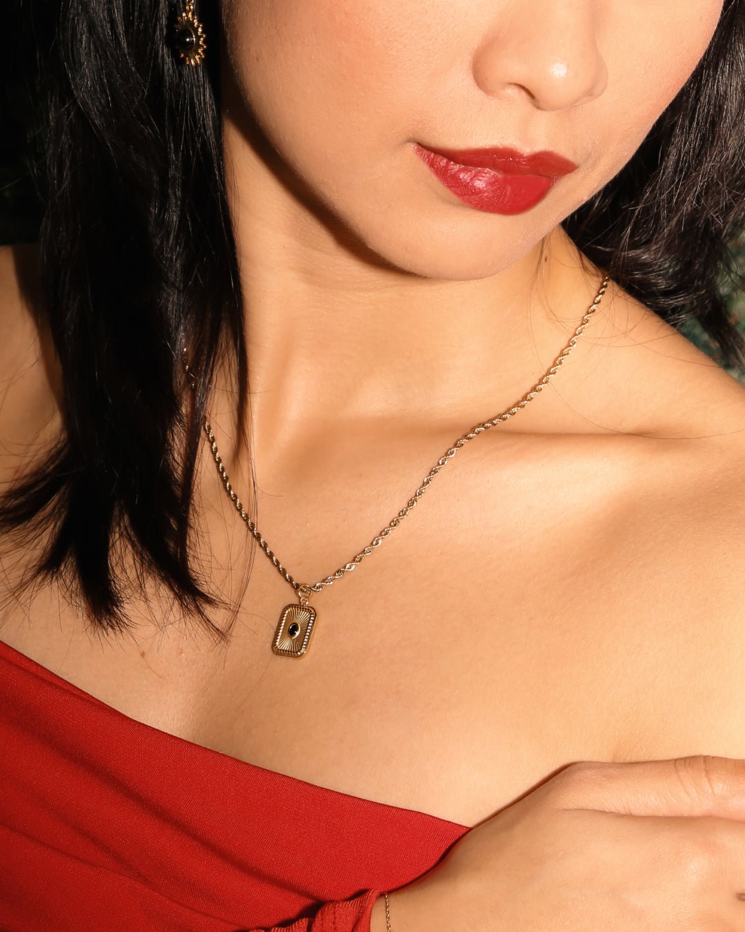 Dimensions: Total chain length is 49cm, pendant length is 1.6cm x 1.1cm