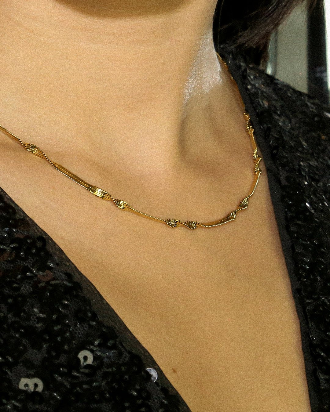 Experience style that speaks volumes with our elegant Twist Herringbone Chain Necklace. Delicately crafted, it has an enticing appeal that amplifies your wardrobe’s potential. Make heads turn at parties or charm your way into meetings with this extraordinary piece of jewellery. Rest assured, the versatility of our Twist Herringbone Chain Necklace sets you apart in any crowd.