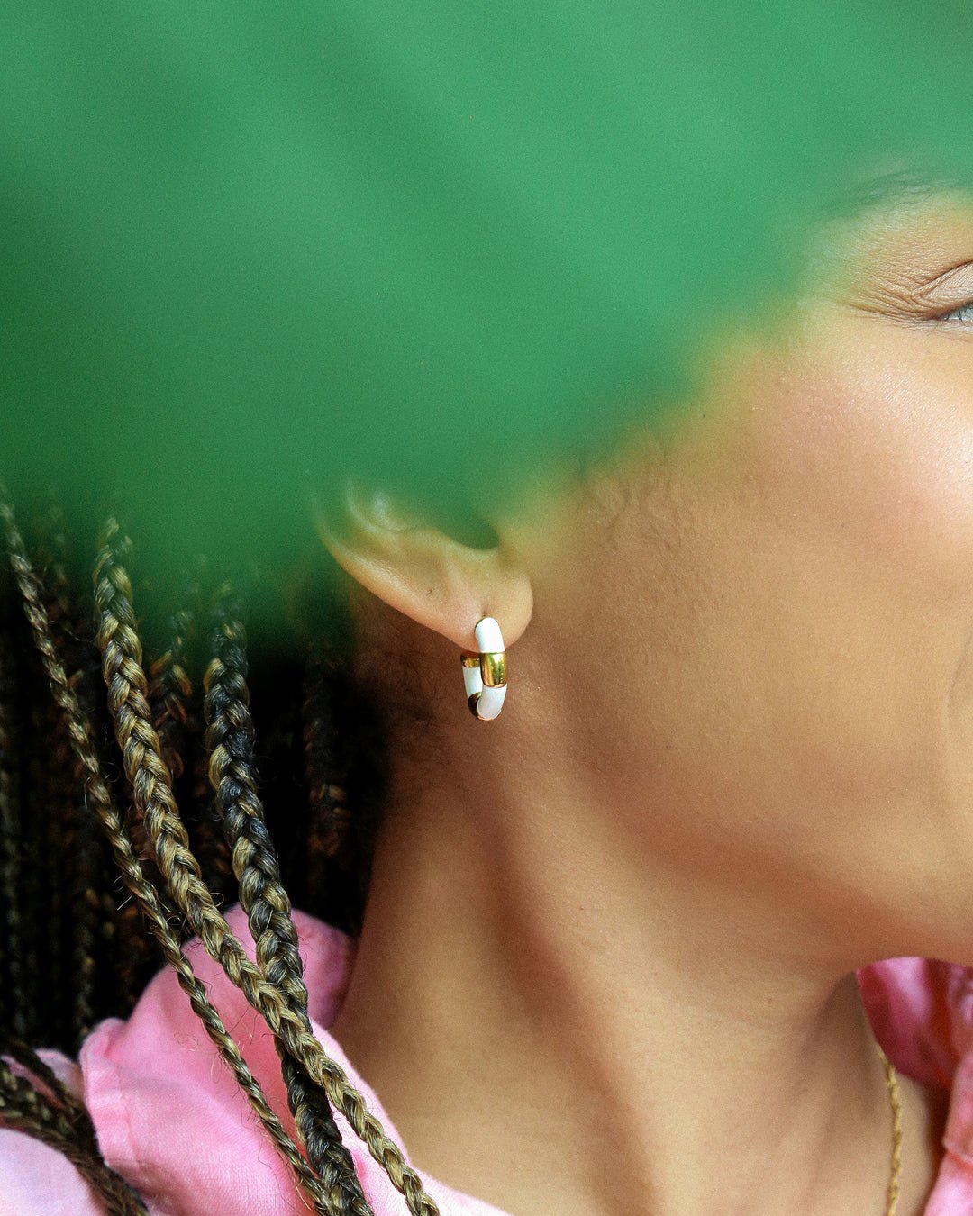 We love the white, we love gold and we decided to bring them together! These White Enamelled Hoop Earrings pairing white with gold create an elegant, stylish look that will make you stand out. These earrings are perfect for those who prefer minimalist, yet sophisticated approach both in their life and in their style.